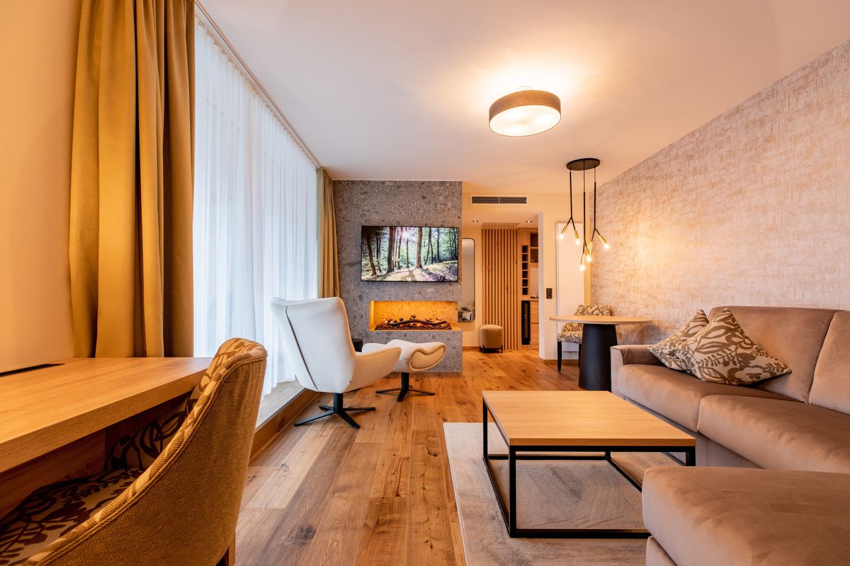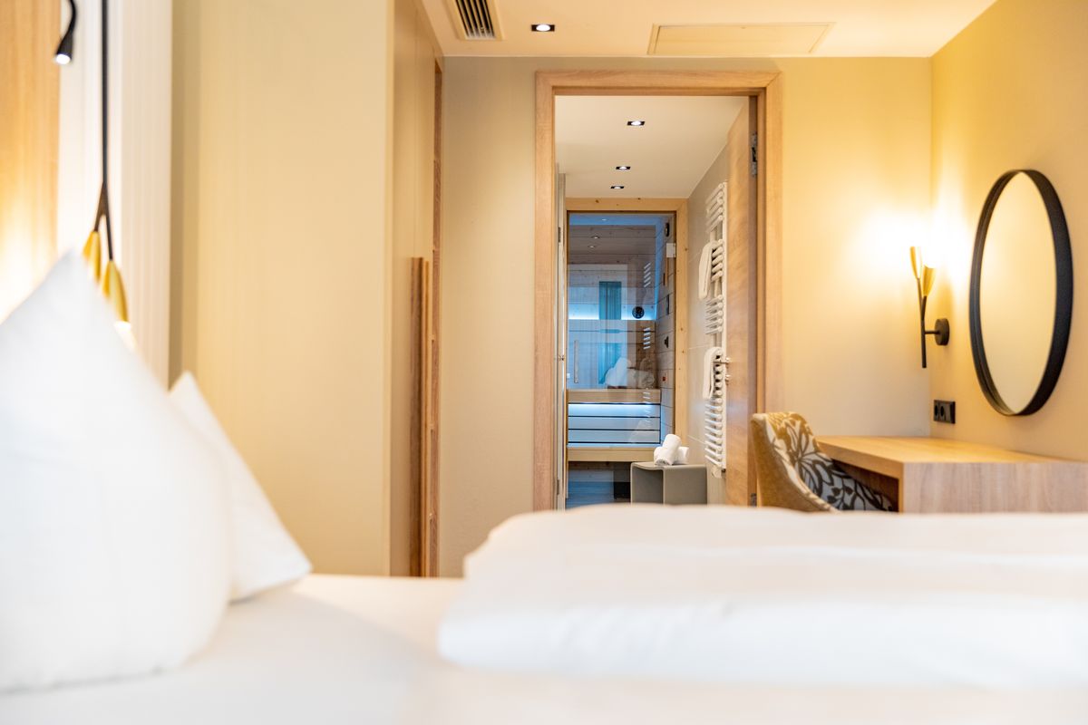 Durch eine Verbindungstür schließen sich die Family Spa Suite Römerfels und das Doppelzimmer Napoleonsfels zusammen. So entsteht eine großzügige Suite für bis zu sieben Personen.